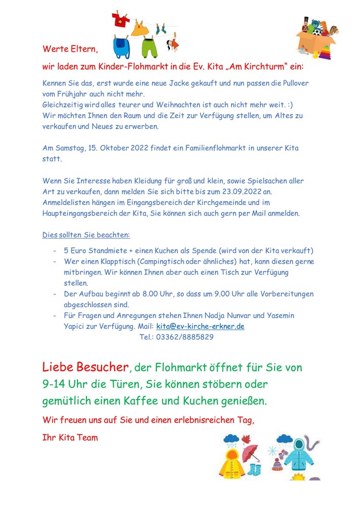 Kinder-Flohmarkt in der Kita "Am Kirchturm" am 15.10., 9-14 Uhr