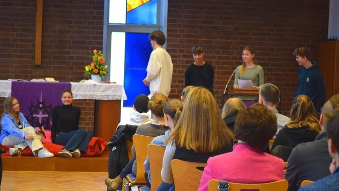 Im Kirchraum des Gemeindezentrums Esche herrschte eine angespannte Atmosphäre. Man spürte die Aufregung und Erwartung der Jugendlichen, die diesen Gottesdienst in ihren Konfigruppen selbst erarbeitet haben.