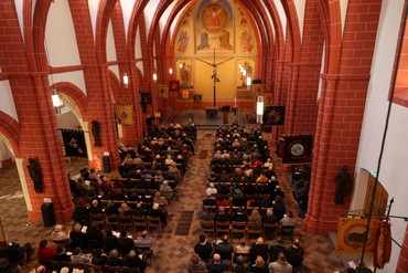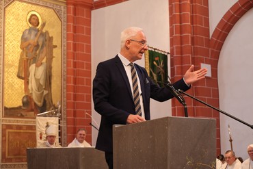 Bischof Dr. Ackermann würdigte die besondere Bedeutung von St. Gangolf als Markt-, Bürger-, Stadt- und Handwerkerkirche, deren Fundament von Beginn an bis heute vor allem die Zivilgesellschaft unserer Stadt ist. Er beglückwünschte mit herzlichen Dankesworten die Kirchengemeinde zur gelungenen Renovierung. Eine große Renovierung, so Pastor Dr. Nicolay, zu der sich die Verantwortlichen der Pfarrei, unter der damaligen Leitung von Pfarrverwalter Dr. Hans Günther Ullrich, mutig entschieden hätten, gerade in Zeiten einer der größten Krisen der Kirche. Jetzt sei die Kirche der Bürgerinnen und Bürger wieder „am Markt“, im gleich zweifachen Wortsinn. „Das geistliche Herz unserer Stadt schlägt wieder“, so Pastor Dr. Nicolay.