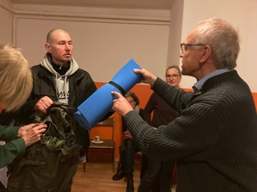 Übergabe der Schlafsäcke an die Gäste (durch W. Prenzel)