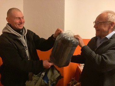 Zu Beginn des Abends wurde Herbert Spindler, der acht Jahre lang als Koordinator für das Nachtcafé ehrenamtlich tätig war, verabschiedet. Pfarrer Michael Wenzel und Michael Volz, Beauftragter für Ökumene und Ehrenamt beim Kirchenkreis Tempelhof-Schöneberg bedankten sich beide im Namem aller sehr herzlich bei Herbert Spindler und überreichten Abschiedsgeschenke. Dieser kümmerte sich in den vergangenen Jahren um die unterschiedlichsten Dinge – ob die Spülmaschine kaputt ging, der Abfluss leckte, die Einrichtung vor Saisonbeginn „entrümpelt“ werden musste, ob Dankeskarten an fleißige Spender*innen geschrieben werden oder die Finanzen im Blick gehalten werden mussten: Herbert hatte für alles ein Händchen, Zeit und oft die richtigen Kontakte.