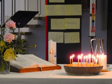 Solche Beispiele gibt es auch bei uns in der Matthäuskirche. In der Corona-Zeit haben wir die Stühle neu angeordnet um einen neuen Altar in der Mitte der Kirche. Eine Tonschale mit Sand und dünnen Kerzen gibt Menschen die Möglichkeit ihr persönliches Gebet vor Gott zu bringen. Wir staunen immer wieder, wie viele Menschen dieses Angebot nutzen. Auch weil der Altar als Zeichen der Nähe Gottes, seiner Liebe, seinem Wort und Brot und Wein nicht erhöht und weit weg steht, sondern in der Mitte der Gemeinde. Nicht hoch erhaben, sondern nah und erreichbar. GOTT ist mitten unter UNS. Das Ritual mit den Kerzen und den Altar in der Mitte haben wir lieb gewonnen. Beides sind ein Herzstück und Kennzeichen unserer Gottesdienste geworden.