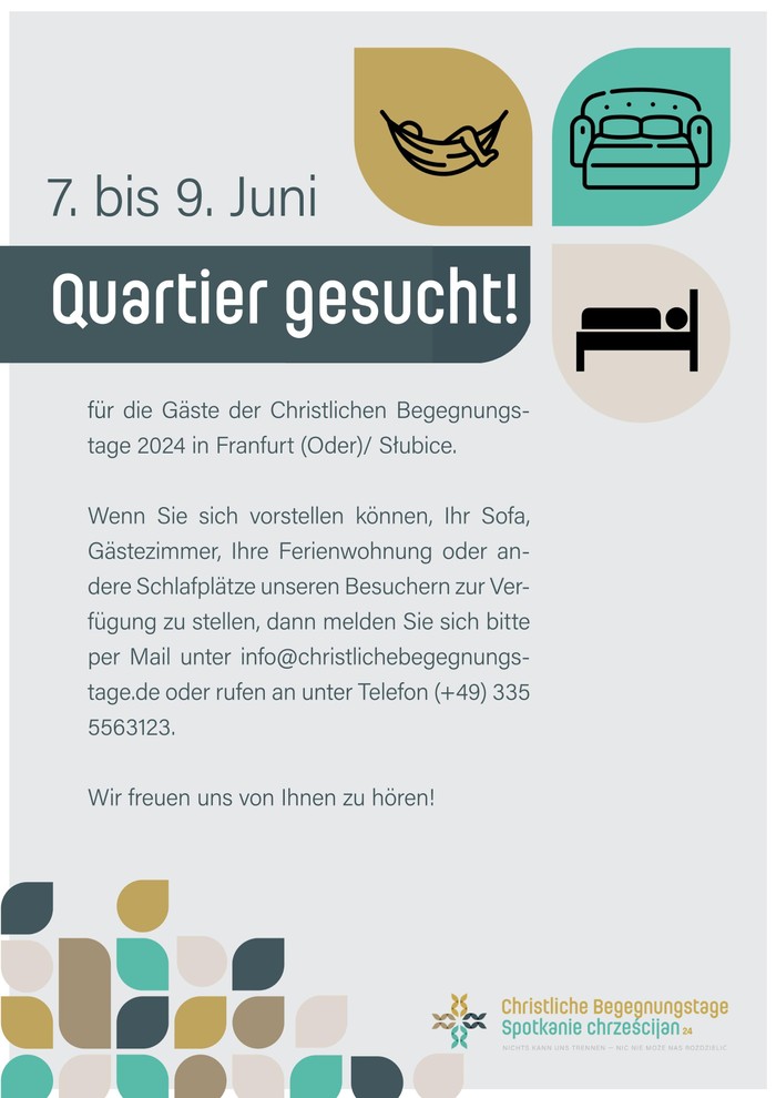 Quartiere gesucht für die Christlichen Begegnungstage 7. bis 9. Juni 2024