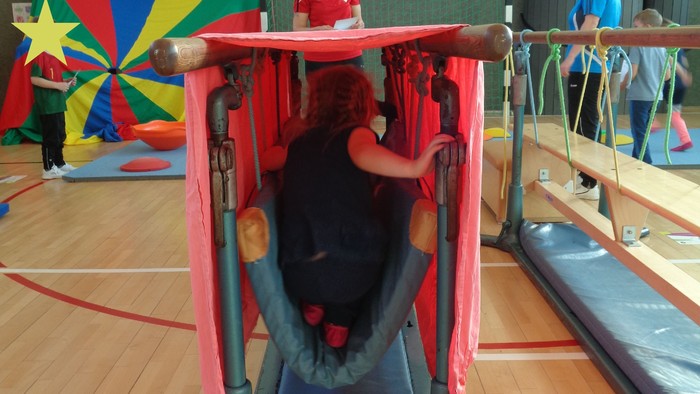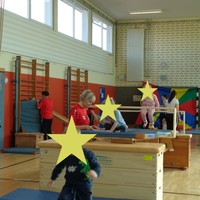 Vom Sportverein waren wir zum „KIBAZ“ in die Grundschulturnhalle eingeladen. Wir kletterten hoch hinaus, balancierten, machten Riesensprünge und großartige Rutschpartien. Wir hangelten und kletterten uns mutig voran und krabbelten durch ungekannte „Tunnel“. Das hat allen großen Spaß gemacht!