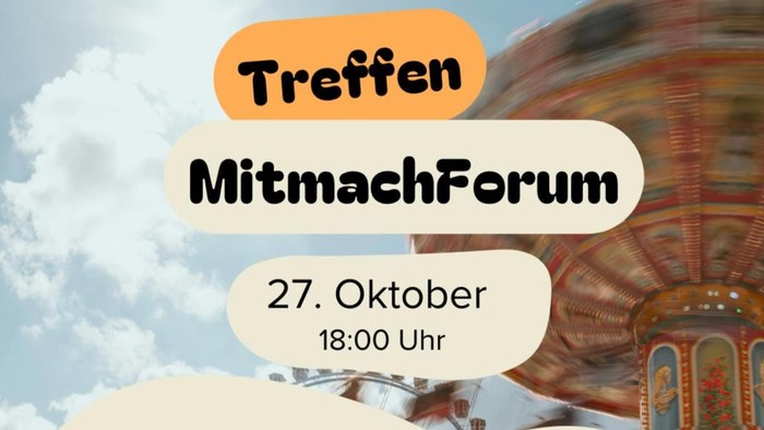 Das klären wir beim ersten Treffen des "MitmachForum" am Montag, den 27. Oktober um 18 Uhr im Paul-Gerhardt-Haus, Marxstr. 23.