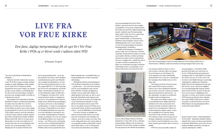 Susanne Torgard er kirke- og kulturmedarbejder i Vor Frue Kirke – Københavns Domkirke. Kirkens arkivalier bliver i denne tid ordnet og systematiseret af Christiane Klindt Nielsen, og det et bl.a. den store samling avisudklip og lytterbreve, der ligger til grund for oplysningerne i artiklen.