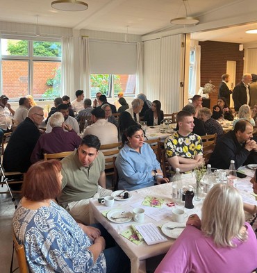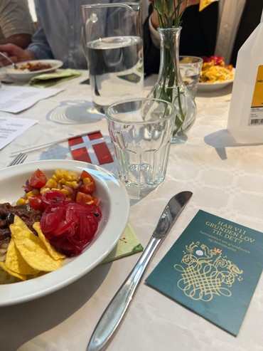 Den første grundlovsmiddag kom i stand efter at vi i stiftsudvalget havde drøftelser med Cem og Dialogforum om en fælles ramadanmiddag. I 2023 faldt ramadan/Eid og påske sammen, ligesom i år, så det var oplagt at sætte en fælles fejring i værk. Problemet er bare at påsken også er en vældig travl tid her i kirken, så vi nåede ikke at få arrangeret noget. Travlheden fortsatte og pinsen begyndte at nærme sig uden at vi havde fået sat vores skib i søen. Vi syntes dog det var alt for ærgerligt hvis den gode idé om at arrangere noget sammen skulle gå i vasken. Så i stedet for en religiøs højtid for den ene eller den anden gruppe, blev vi enige om at fejre en fælles højtid for demokrati og dansk identitet, nemlig grundlovsdag.