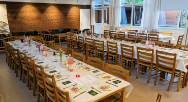 Livlig snak ved bordene.
