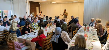 Det er nu anden gang, vi holder tværreligiøs grundlovsmiddag her i Lundehus kirkes lokaler, i år med dobbelt så mange deltagere som sidste år.