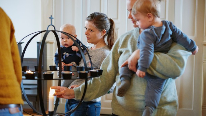 "Velkommen til babysalmesang i Vor Frelsers Kirke. Her kan børn og voksne opleve musikken, rummet og fællesskabet med andre. Vi vil sammen udforske musikken, både salmer og børnesange, og nyde kirkens smukke omgivelser og alle de sanseoplevelser det giver de små.