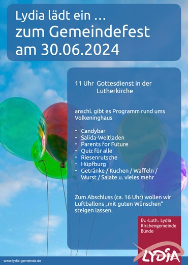 und feiert das Gemeindefest am 30.06.2024 in diesem Jahr rund um die Lutherkirche und dem Volkeninghaus in Südlengern Dorf.