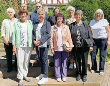 Diamantene Konfirmanden von links, Reihe 1: Waltraud Schneider, Helga Fuhrmann, Waltraud Siehl, Helga Schönewolf. Reihe 2: Regine Bockhorn, Heinrich Scherp, Ernst Faller, Brigitte Hanke, Dorothee Krippner-Kümpel und Gudrun Ehrhardt.