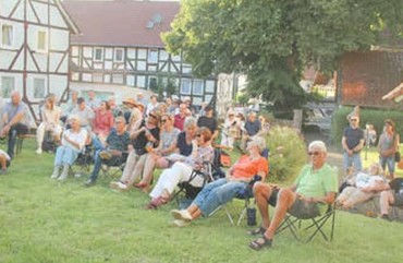 Bei bestem Sommerwetter hat die Band "Sixtyfour" letzten Freitag für gute Stimmung in unserm Dorf gesorgt. Zum zweiten Mal hat sie die Besucher mit ihrer Musik hellauf begeistert. Es wurde Classic-Rock gespielt, wie Roxanne, Message in a bottle, Purple Rain und viel mehr. Rund um die Kirche Rhünda bekamen die Musiker von rund 300 Besuchern viel Beifall und Applaus. Es war mal wieder ein sehr unterhaltsamer und wunderschöner Konzert-Abend, der nächstes Jahr wiederholt werden sollte. Die Band "Sixtyfour" von links nach rechts: Ulf Gottschalk, Nicole Rudolph und Harry Stingl: