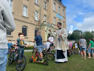 und für eine sichere Fahrt wurden die Roller, Fahrräder und Laufräder gesegnet damit es keine aufgeschrammten Knie gibt ;-)