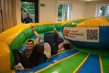 Vom Motto unseres Gemeindefestes fühlte sich unter anderem der Regen angesprochen ;-). Zwischen Candy-Bar im Eingangsbereich und Hüpfburg im Keller konnte man am 30.06.24 dicht gedrängt unter Pavillons und im Erdgeschoß des Volkeninghauses allerlei spannendes Entdecken. Zwischen Bratwurst, Gemüsespießen und Salaten, Kaffee und Kuchen verzauberte uns der Wittekindshof mit leckeren Crêpes und Südlengern-Aktiv versorgte uns mit kühlen Getränken. Für die weitere Unterhaltung sorgten draußen der Posaunenchor und Parents for Future unter anderem mit einem Klimaquiz. Im Innenbereich konnte man das ein oder andere im Salida Weltladen erwerben und für Kinder gab es im Jugendkeller spannende Angebote der evangelischen Jugend und der Kita Kirchstraße.