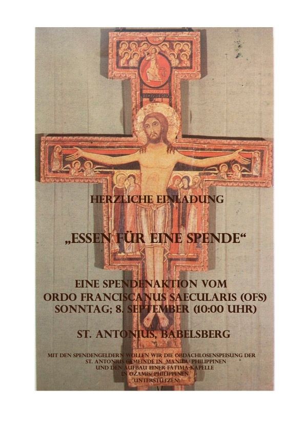 Dies ist eine Aktion unter dem Motto „Essen für eine Spende“ und wird veranstaltet von Mitgliedern des Dritten Orden des Heiligen Franziskus aus unserer Pfarrei.