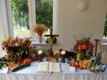 Mit einer Andacht feierte die Gemeinde Rothhelmshausen/Ungedanken am 06.10.2024 das Erntedankfest. Die Gemeinde traf sich im MFH in Rothhelmshausen, wo von Pfarrer Schrader um 14.00 Uhr die Andacht gehalten wurde. Ein schön gestalteter Alter, dekoriert mit Spenden zum Erntedank und eine Andacht mit Beteiligung von Jugendlichen aus der Gemeinde bildete einen schönen Rahmen. Im Anschluss saßen die Anwesenden noch bei Kaffee und Kuchen zusammen. Die Spenden zum Erntedank kamen im Anschluss der Tafel in Fritzlar zugute und wurden von Pfarrer Schrader überreicht.