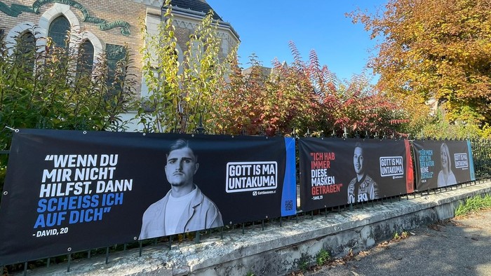 Du kannst in Deinem Ort Plakate aufhängen, die auf die Videos hinführen. Du kannst Dein Profilbild auf WhatsApp, Facebook, Telegram und Co so gestalten, dass es aussieht wie ein „Gott is ma untakuma“-Plakat mit Deinem eigenen Gesicht. In den kommenden drei Wochen der Kampagne wird es Straßeneinsätze und offene Gottesdienste geben. Oder liegt Dir Gebet am Herzen? Dann werde Teil der Gebetskette! Mehr Infos dazu gibt es auf der Webseite Gottkennen.at.