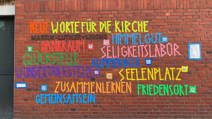 Die Konfis haben überlegt, was ihr Wort bedeutet und wo es draufstehen müsste, damit möglichst viele Menschen es lesen können. Und wo das Wort seine Power entfalten könnte. Über QR-Codes kann man sich anhören, was die Konfis zu sagen haben.