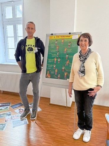 Antwort:Einmal im Monat planem wir die Kinderkirche. Wir überlegen uns das Thema, wählen die Lieder aus und planen eine Bastelaktion. Außerdem stellen wir den Ablauf des Gottesdienstes zusammen.