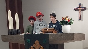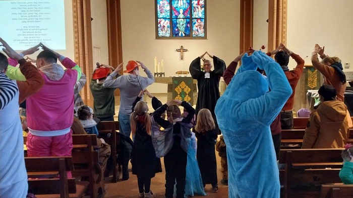 Ein fröhlicher und bewegter Gottesdienst, in dem uns die Geschichte von Zachäus erzählt wurde. Gott sieht jeden Menschen so, wie er ist. Bei Gott darf ich so sein, wie ich bin. Diese Botschaft wurde in Bildern, Liedern und viel Bewegung für Groß und Klein lebendig.