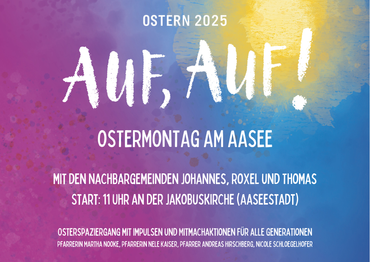 Unser Lauf am Ostermontag startet um 11 Uhr an der Jakobuskirche. Und keine Sorge, die Sportschuhe können Sie getrost zu Hause lassen. Es ist ein Osterspaziergang, eine Begegnung mit Gott und den Menschen auf der Strecke, mit Gelegenheiten zum Innehalten und Ausschau halten auf dem Weg. Also: Auf, auf zum Aasee!