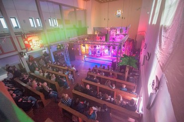 Am letzten März-Wochenende versammelte sich freitagsabends ein Team aus Ehrenamtlichen, um die Adventskirche in einen magischen Ort zu verwandeln. Kirchenbänke wurden gerückt, das Traversengerüst aufgebaut, die richtige Technik installiert und die Kulisse aufgestellt.