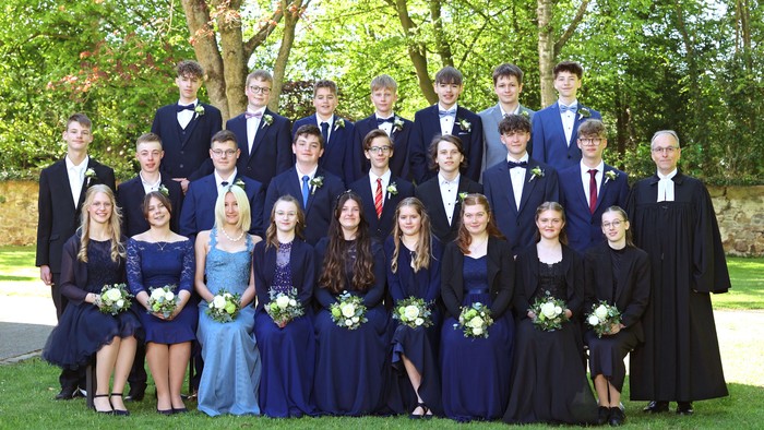 In einem feierlichen Gottesdienst am Sonntag Quasimodogeniti, dem 27. April, wurden 24 Konfirmandinnen und Konfirmanden in unserer St. Marien-Kirche durch Pfarrer Christoph Röthemeyer konfirmiert. Der Posaunenchor unter der Leitung von Dieter Köster und der Chor „Die Chorallen“ unter der Leitung von Ute Helling gestalteten den musikalischen Rahmen.