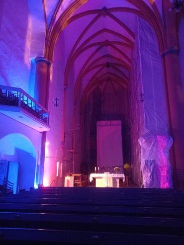 Zahlreiche Besucher/innen ließen sich am späten Freitagabend von einer Zeitreise in die Romantik verzaubern. Mit groß projizierten Gemälden von Caspar David Friedrich, William Turner, Carl Friedrich Lessing, Kirchen- und Volksliedern aus dieser Epoche, die vom Frauen-Projektchor der Kantorei Fritzlar unter der Leitung von Kantor Reiner Volgmann vorgetragen wurden, entstand in der bunt beleuchteten gotischen Franziskanerkirche eine Stimmung, die in die Atmosphäre jener Epoche entführen sollte. Die Violinistin Marion Linse begleitete den Gesang einfühlsam und mit warmem Ton.