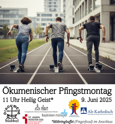 Unter dem Motto "Auf die Plätze, mutig, los" kommen am Pfingstmontag die Gemeinden des Südviertels ökumenisch an der Heilig Geist-Kirche zusammen, um gemeinsam Gottesdienst zu feiern.