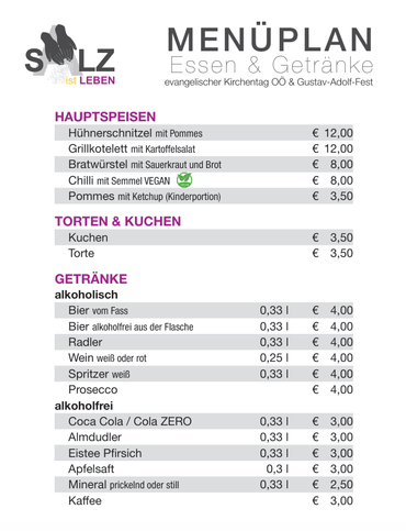 Anbei findet ihr den Übersichtsflyer, die Menükarte und das aktuelle Programm.