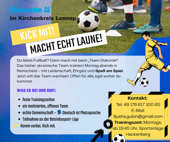 Wenn Sie gerne Fußball spielen oder jemanden kennen, für den das „Team Diakonie“ genau das Richtige sein könnte: