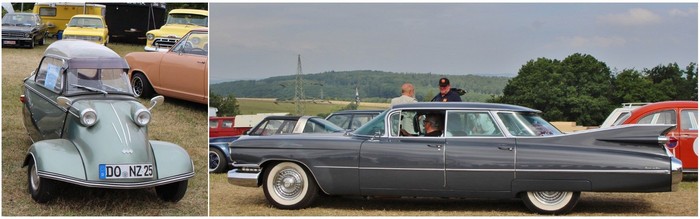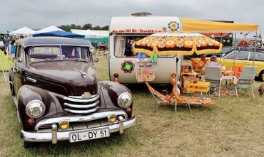 Von der ersten 2,80 m Nachkriegs-Errungenschaft, dem kleinen Messerschmitt Kabinenroller bis zum 5,40 m Wirtschaftswunder, einem Chevrolet Impala, vom Güldner Schlepper bis zum Lanz Bulldog, vom Wehrmachtskübel bis zum US-Army-Truck, von der Simson Spatz bis zur Uralt-Harley mit Beiwagen stehen sie zum Anschauen bereit, gut restauriert, auf Hochglanz poliert oder auch im Shabby-Look.
