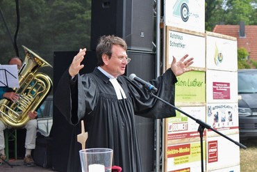 Es ist der Wochenspruch, mit dem Pfr. Neuser auf die herausfordernden Aufgaben der Durchführung eines so großen Treffens hinweist, die nur bewältigt werden können, wenn alle gegenseitig bereit sind Lasten zu tragen. Das gilt heute hier, wie es auch in den sich ständig verändernden Bedingungen für die Kirchengemeinden der Fall ist. Der Einsatz für die Sache verlangt den Beteiligten immer mehr ab. Das sich dennoch Menschen finden, die sich einbringen und mitarbeiten, dafür gilt es zu danken.