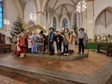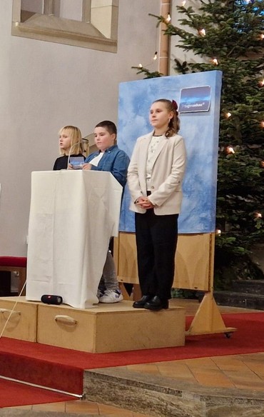 Anstatt die Geschichte nur nachzuspielen, wurde der Altarraum zum News-Studio umgebaut. Ausgestattet mit Mikrofonen, gingen die jungen „Himmels-Reporter“ der Sache auf den Grund. In exklusiven Interviews kamen die Zeitzeugen zu Wort: Was sagten die Hirten zu der Erscheinung auf dem Feld? Warum hatten die Wirtinnen keinen Platz mehr frei? Und was hatte es mit dem hellen Stern auf sich, dem die Sterndeuter aus dem Morgenland gefolgt sind?