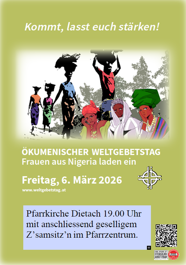 Den ökumenischen Weltgebetstag 2026 feiern wir in der röm.-katholischen Pfarrkirche Dietach ab 19 Uhr.