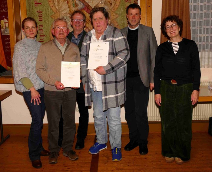 Anschließend ehrte Josef Richter verdiente Mitglieder der Kolpingsfamilie Großentaft. Für 25 Jahre: Markus Kircher und Dagmar Neumeier-Veltum, für 50 Jahre: Reinhold Trabert, für 60 Jahre: Günter Pilz.