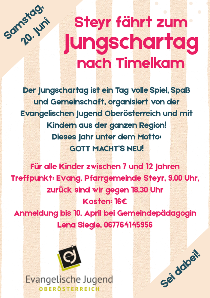 Der Jungschartag ist ein Tag volle Spiel, Spaß und Gemeinschaft, organisiert von der Evangelischen Jugend Oberösterreich und mit Kindern aus der ganzen Region!