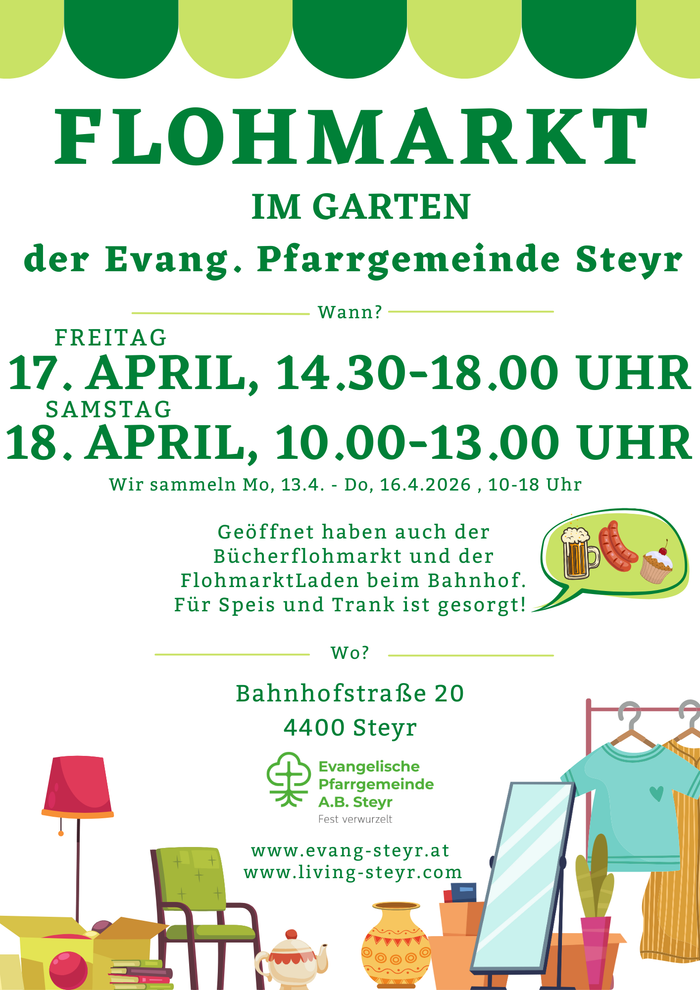 Unser jährlicher Flohmarkt im Garten findet heuer schon im April statt.