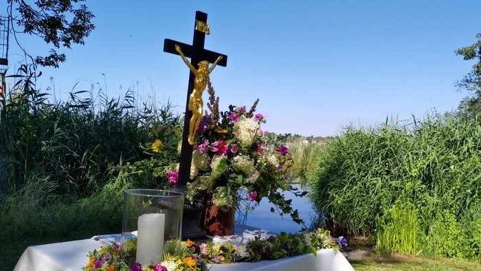 Wir laden ein zum Tauffest unterhalb der Geltower Kirche an der Havel, mit Taufen und Tauferinnerung.
