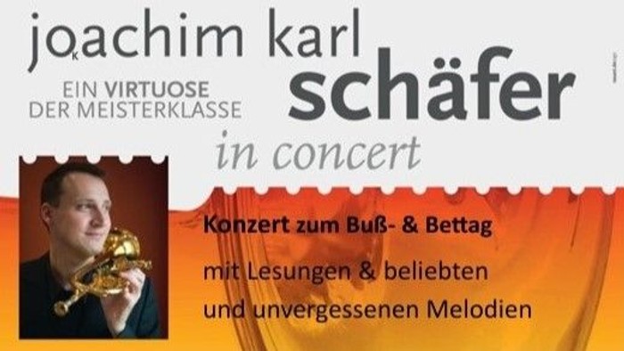 Mittwoch, 19. November 2025, 17:00 Uhr St. Nicolaikirche Wilsdruff, Kirchplatz 3 a, 01723 Wilsdruff Joachim Karl Schäfer - Trompete, Oksana Weingard - Klavier, Lars Jung (Staatsschauspiel Dresden) - Lesung Karten zu 10 €/ Kinder bis 14 Jahre frei Konzert zum Buß- & Bettag mit Lesungen & beliebten und unvergessenen Melodien