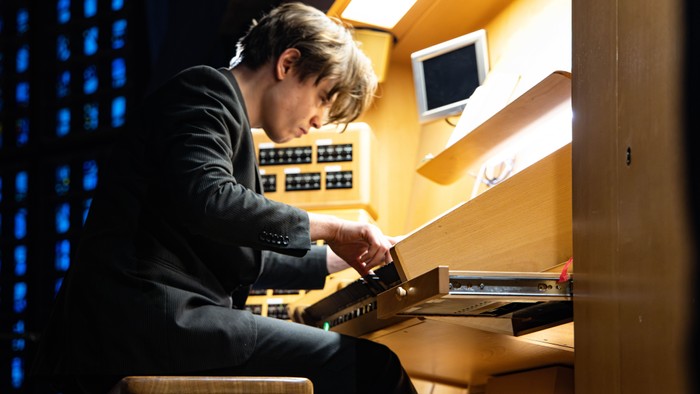 Der Organist der Gedächtniskirche, Sebastian Heindl, spielt in 14 Konzerten das gesamte Orgelwerk J.S. Bachs auf der großen Schuke-Orgel der Gedächtniskirche