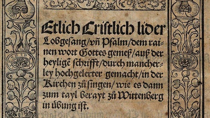 Zur Jahreswende 1523/24 erschien mit dem „Achtliederbuch“ die erste Sammlung evangelischer Kirchenlieder. Vier davon stammen von Martin Luther. Für den Reformator war der Gemeindegesang wesentlich für die Gestaltung evangelischer Gottesdienste und für die Verbreitung der reformatorischen Ideen. In der Folgezeit hat sich eine reiche Tradition evangelischen Liedguts entwickelt.