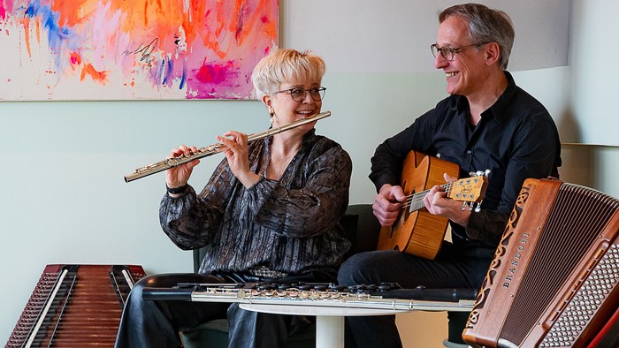 Almut Schwab, Flöten, Akkordeon und Cymbal, Frank Zinkant, Gitarre