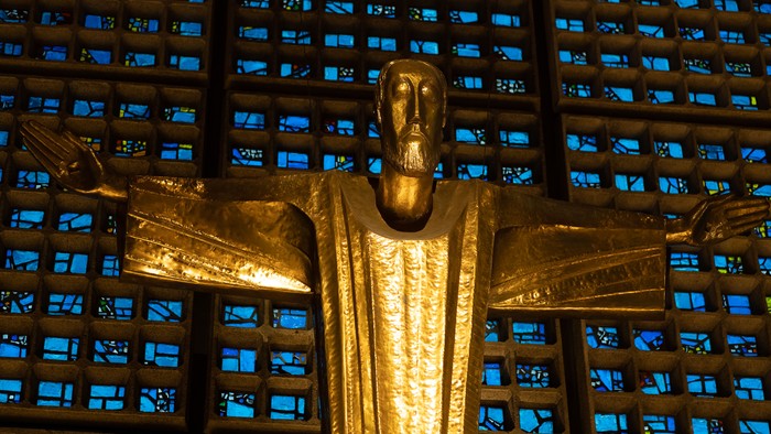 Golden leuchtet über dem Altar der Gedächtniskirche die Figur des auferstandenen Christus. Seine weit ausgebreiteten Arme erheben sich wie zum Segen über alle Besucherinnen und Besucher. Viele Menschen sind berührt von der Geste des Willkommens, die dieser Christus ausstrahlt. Sein Schöpfer, der Bildhauer Karl Hemmeter, tritt meistens hinter seinem Hauptwerk zurück. Im Gottesdienst erinnern wir an seinen 120. Geburtstag und erzählen die spannende Geschichte der Entstehung dieses besonderen sakralen Kunstwerks.