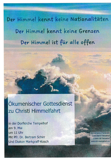 Herzliche Einladung zum Open Air Gottesdienst, Christi Himmelfahrt.