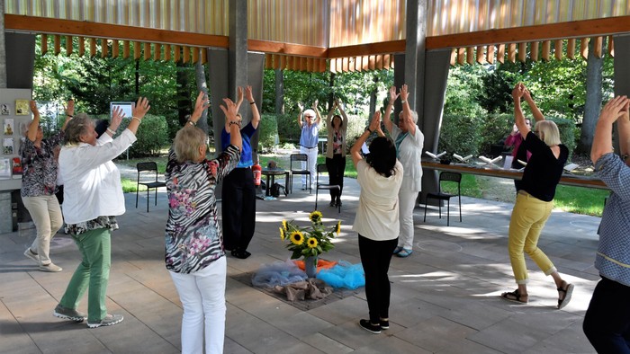 Auch in diesem Sommer sind Besucher*innen herzlich eingeladen zum Tanzen im GlaubensGarten. Unter der Leitung von Anna Beuting und Marlies Drestomark werden nach jeweils einer kurzen auf das Thema einstimmenden Meditation einfache Tanzschritte mit begleitenden Gebärden eingeübt. Zur Musik von Helge Burggrabe aus den „Hagios“-Zyklen (gesungenes Gebet) können die Besonderheiten der vier Elemente Luft, Feuer, Wasser, Erde nachempfunden und durch Bewegung ausgedrückt werden. Die Teilnahme ist kostenlos.