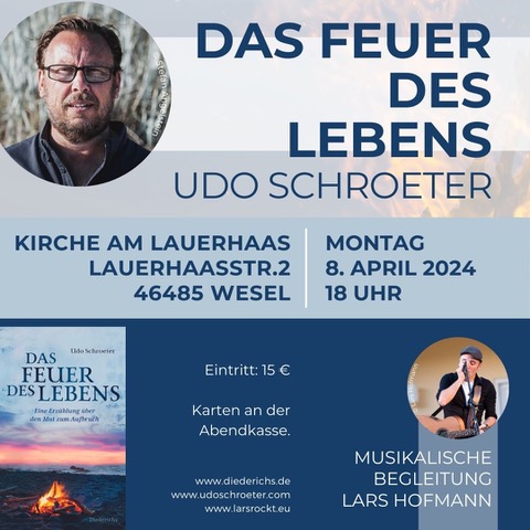 Die Lesung und das Storytelling aus dem aktuellen Buch "Das Feuer des Lebens" wird musikalisch durch den Ex- und "bald-wieder" Lüneburger Lars Hofmann begleitet. Von Afghanistan über St. Pauli bis Zypern ist er als Musiker viel rumgekommen.