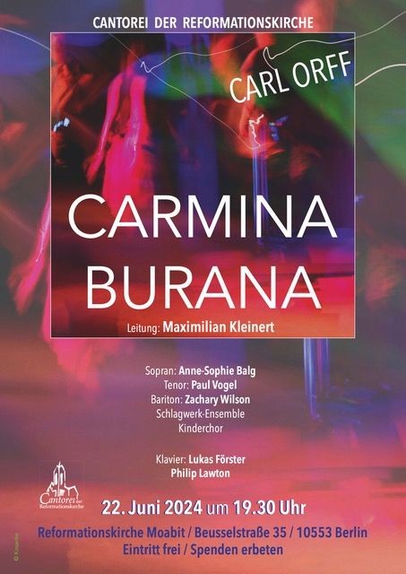 Samstag, 22. Juni 2024, 19:30 Uhr Reformationskirche, Beusselstraße 35, 10553 Berlin