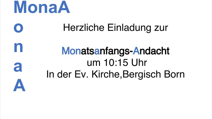 An jedem ersten Sonntag im Monat gestaltet eine Gruppe aus der Gemeinde eine Monats-Anfangs-Andacht. Es gibt eine veränderte Liturgie, viel Gesang, und es geht lockerer zu.